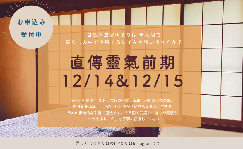 12月の直傳靈氣前期セミナー@千葉旭【残席1です】