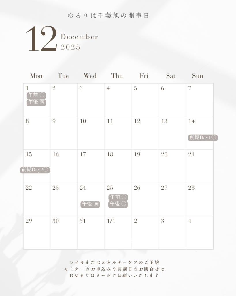 12月の靈授&復習会の日程【お申込み受付中】
