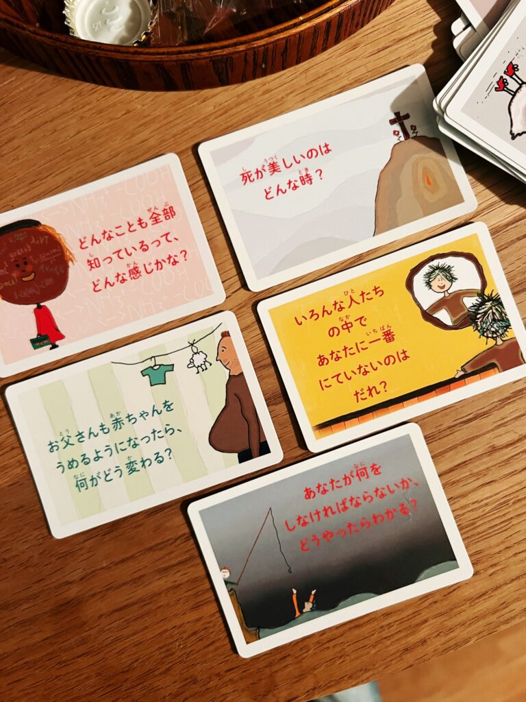 トランプのカードのように5名に均等配布して、手元のカードの中から取り上げたいテーマをピックアップ。ひとり1テーマで1巡し、2時間があっという間に過ぎました。