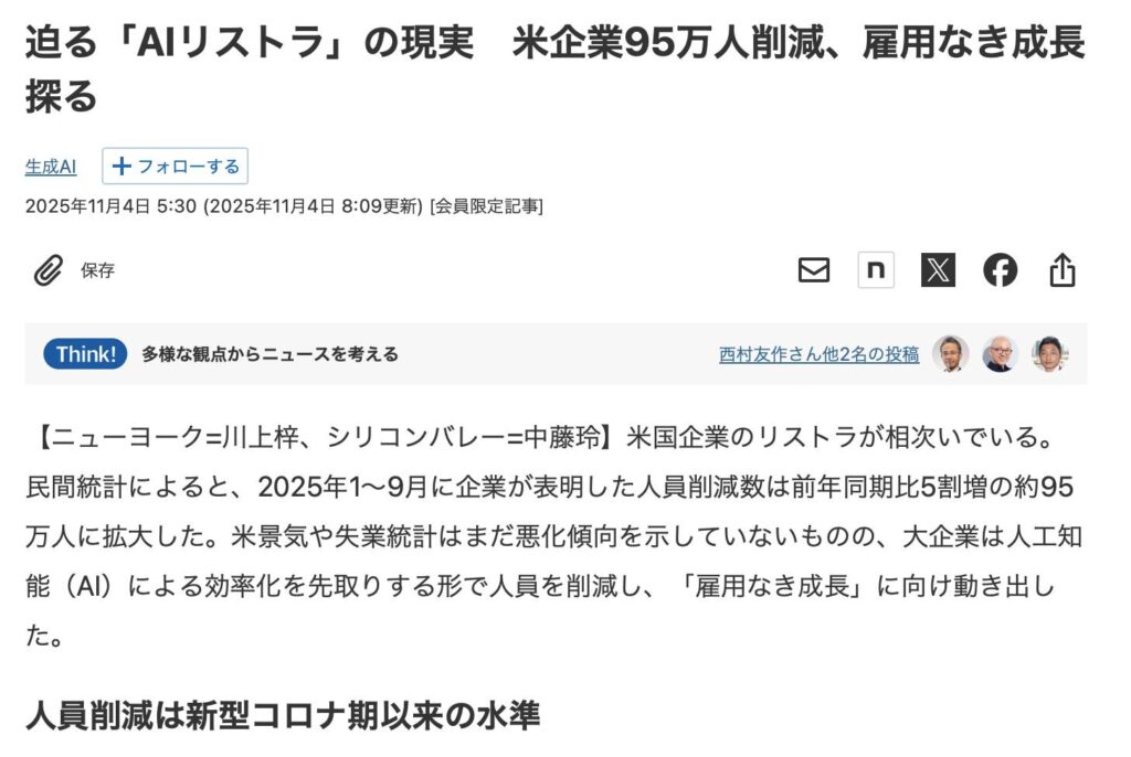 夫:髙坂勝は論理的にデータをもとにAI時代を分析していて、幾つかの新聞記事のタイトルをシェアしています。考えさせられる情報なので転記しますのでご関心ある方はご一読くださいね。(やや言葉遣いが強いですが、、、。)