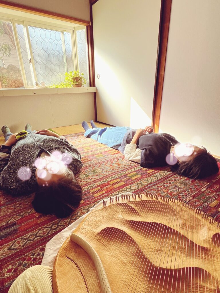 ライアーの音色が美しく、包み込まれるようで本当に癒されました。4人の方に手を当ててもらってとても暖かく体がほぐれました。普段は家族に使うことが多いので、色々な方に手を当てさせてもらって、学べる機会はありがたいです。